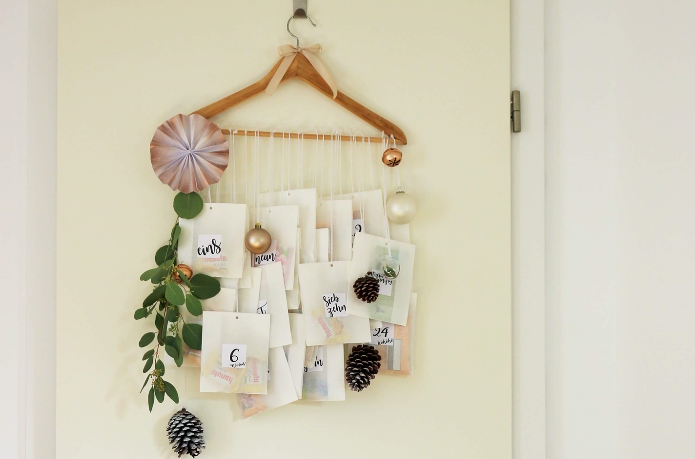 16. DIY Adventskalender Idee mit Kleiderbügel und Papiertüten