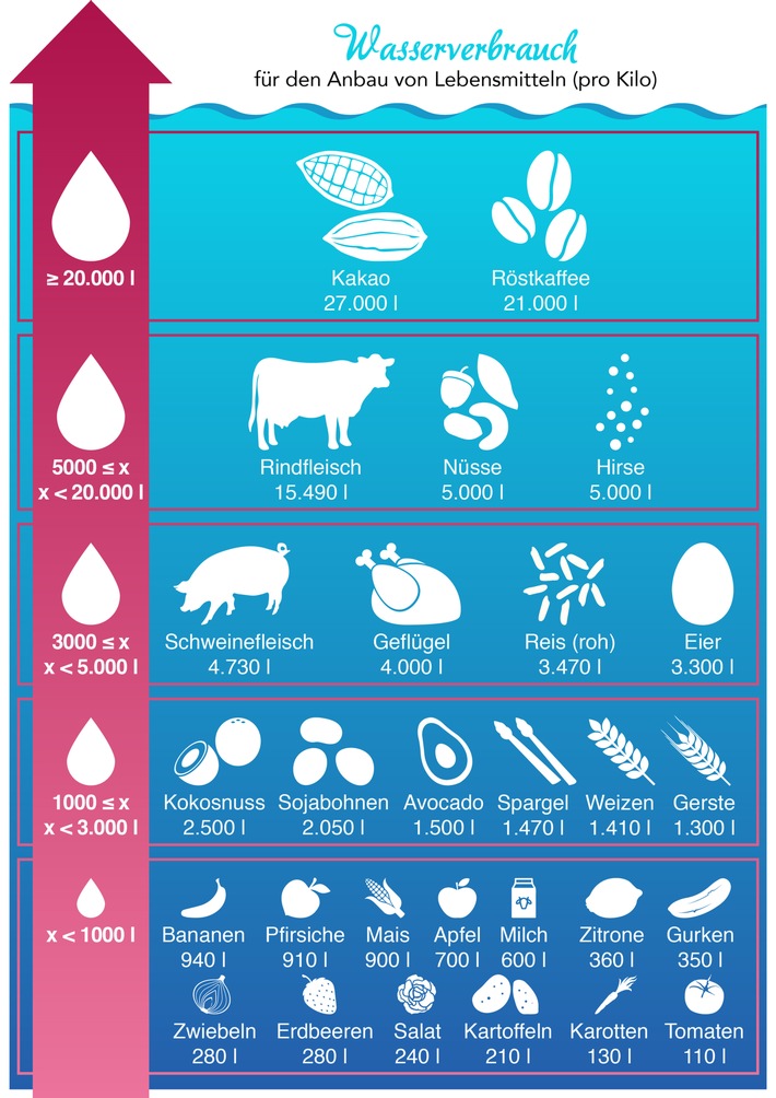 von Bis zu 27 000 Liter Wasser pro Kilo Diese Lebensmittel. Quellbild: www.presseportal.de. Besuchen Sie diese Site für Details: www.presseportal.de