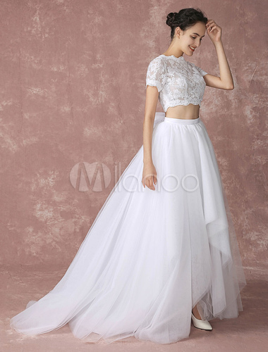 von Crop Top Spitze Hochzeitskleid zweiteilige hohe niedrige. Quellbild: www.milanoo.com. Besuchen Sie diese Site für Details: www.milanoo.com