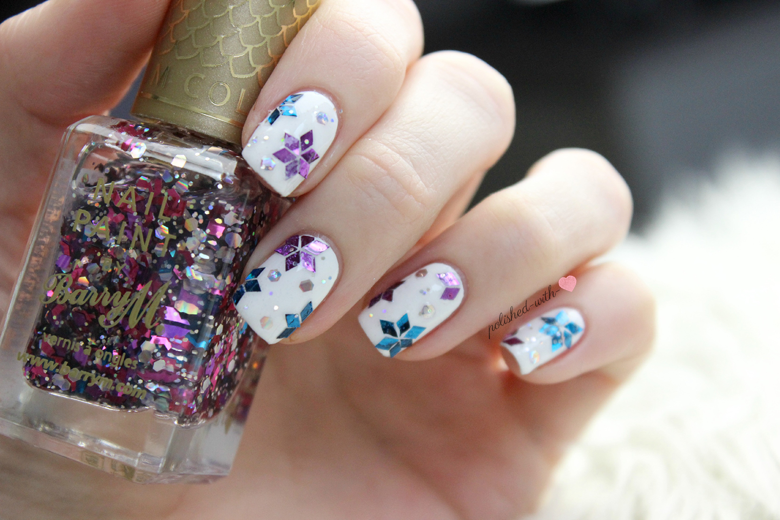 von Polished with Love Nageldesign Glitzer Schneeflocken. Quellbild: polished-with-love.blogspot.com. Besuchen Sie diese Site für Details: polished-with-love.blogspot.com
